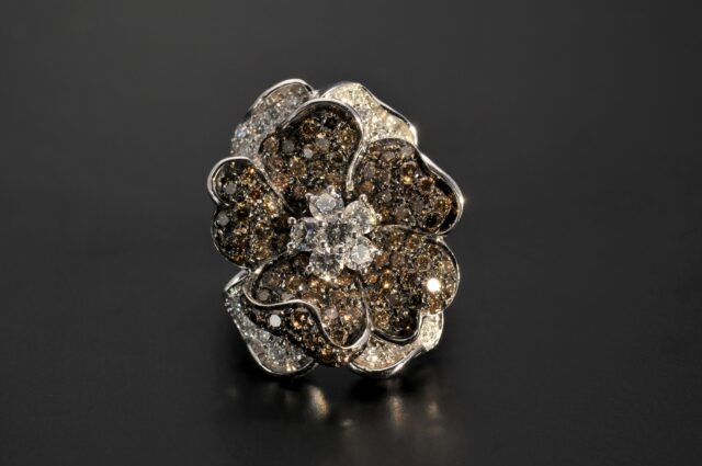 ブラックダイヤは、その独特な黒色と落ち着いた輝きが特徴です。以前は縁起の悪いイメージを持たれていましたが、近年では有名ブランドのジュエリーやファッションアイテムに多く採用されるようになりました。